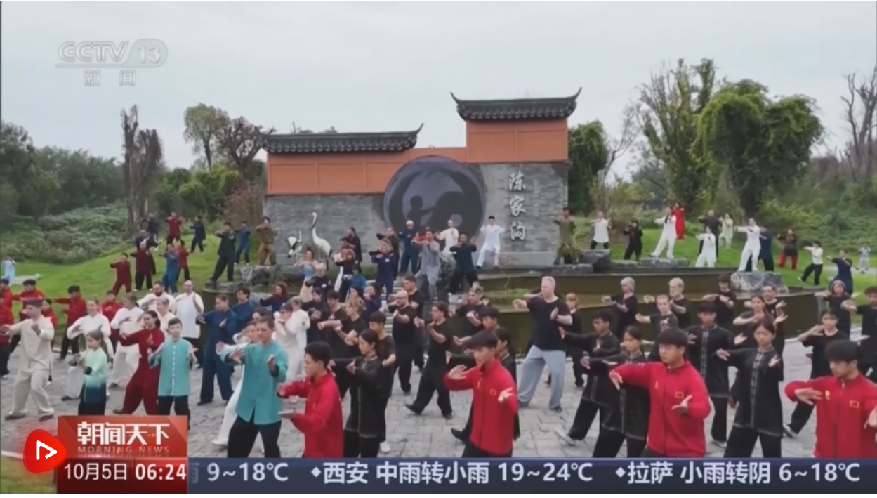 正在现场,来自多个国度和地域的太极拳者身着服,正在悠扬的音乐声中慢慢起势,他们动做划一齐截,一招一式展示出了太极拳的刚柔并济。