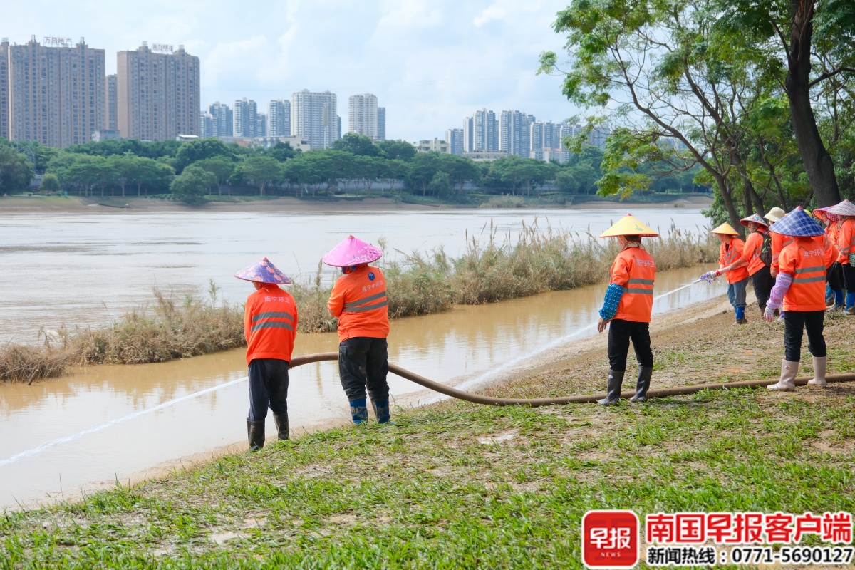 “我们从今天起头清淤工做,次要清淤范畴从清川大桥两岸至北大桥段沿线沿岸,包罗沿线的步道、公园,采纳水退人进的方式,已投入700多名环卫工人、30台水车功课。”南宁市西乡塘区区建宁中环城市办事无限义务公司副总司理阳晓丹引见道,目前气候炎热,工人们每天6时到岗工做,到下战书六七时才下班,采纳轮班制,工做时间长,工做量大,他们为此预备了充脚的防暑物资,还正在沿线设置了平安巡视员,保障工人的工做平安。据领会,视水退的环境,清淤工做估计还需一周时间才能完成。